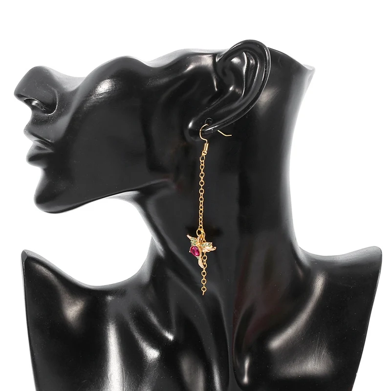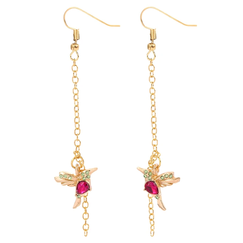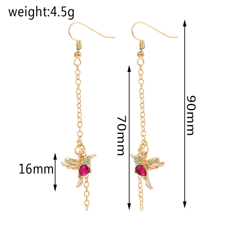 1 Pair Long Drop Earrings Bird Pendant Tassel Crystal Pendant Earrings Ladies Jewelry Design Hummingbird Earring