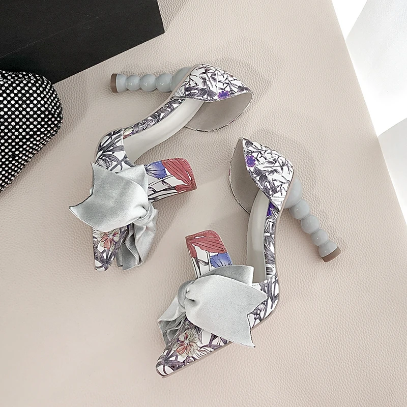 2020 Spring Summer Cow Leather Women Shoes High Heels Gladiator Sandals Pearl Strap Women Pumps Point Toe Sexy Sandalia Feminina